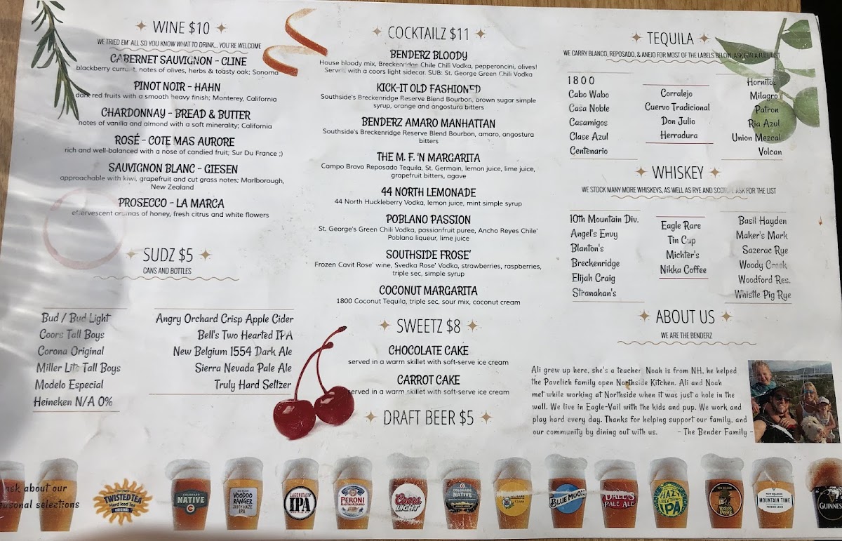 The appeal of Southside Benderz extends beyond its menu. The ambiance is both warm and inviting, offering a cozy and somewhat secluded dining experience. Customers rave about the attentive service, with staff like Liz receiving praises for their excellent recommendations and friendly demeanor. Many patrons share that their dining experience is enhanced by the quick service and the charming atmosphere, making it an ideal stop for families or friends after a day on the slopes.